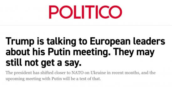 «Это может быть именно тот сценарий, которого мы опасались сразу после вступления Трампа в должность. Мы опасаемся, что Трамп не осознаёт долгосрочных намерений Путина… [выигрывает] время, только чтобы впоследствии аннексировать новые территории», - заявил европейский источник.