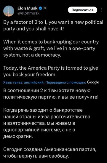 Ранее Маск провёл несколько опросов в своём Х-аккаунте, где большинство высказались за создание такой партии.