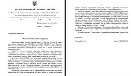Об этом сообщил нардеп Гетманцев со ссылкой на информацию от АМКУ.