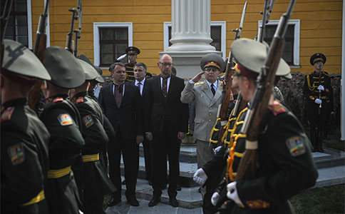 В рамках рабочей поездки во Львов Премьер-министр Украины Арсений Яценюк принял участие в церемонии открытия Аллеи Славы в Академии сухопутных войск им. гетмана Петра Сагайдачного.