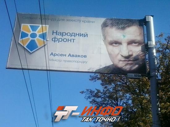 В Харькове в агитационный борд с изображением Арсена Авакова запустили зеленкой.