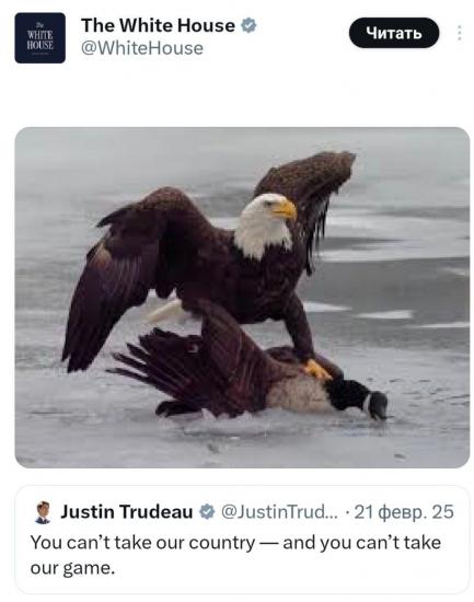 Причём пост опубликован в ответ на запись экс-премьера Канады Трюдо от 2025 года: «Вам не отнять нашу страну, как не отнять и нашу игру».