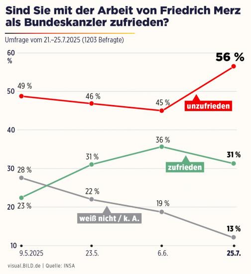 Согласно ним, разочарованы работой канцлера 56% немцев, хотя всего полтора месяца назад недовольных было 45%.