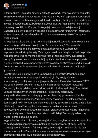 Также он поддержал позицию директора американской разведки Тулси Габбард, которая опровергла теорию о планах России завоевать всю Украину и напасть на Европу.