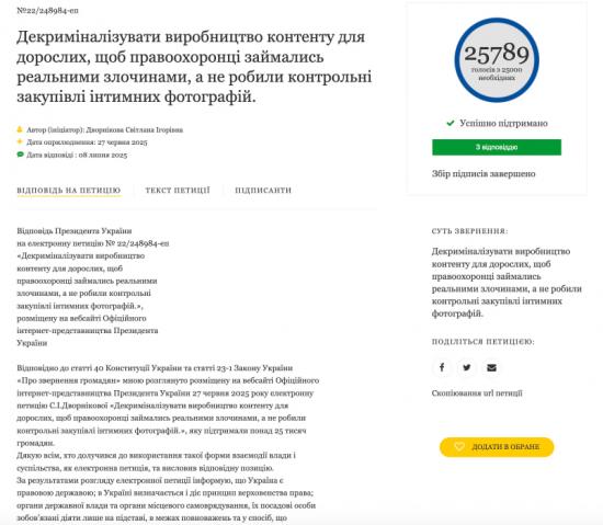 Предложения, изложенные в петиции, направлены в Верховную Раду для учета при рассмотрении этого законопроекта.