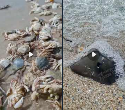 Массовый выброс морских обитателей произошел из-за подъема холодной глубинной воды. Кроме крабов, на берегу также обнаружили скатов.