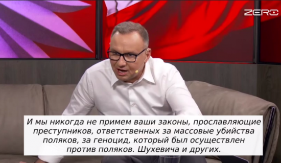 "Когда я приезжаю в Украину, а меня обнимают люди, у которых на руках повязки в цветах бандеровского флага, – это абсурд", – заявил Дуда.