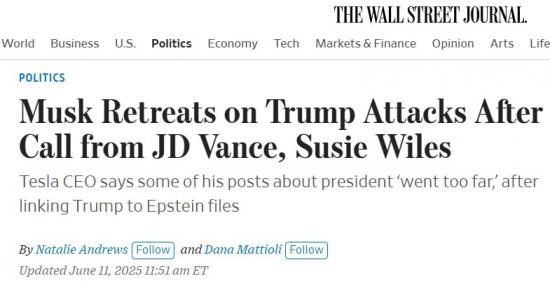 WSJ пишет, что Маск прислушался к Вэнсу.