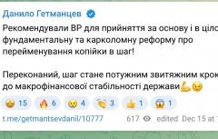 Об этом сообщает нардеп Гетманцев.