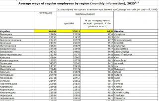 В августе 2025 года средняя зарплата по Украине сократилась в сравнении с июлем на 2,2% - с 26 499 грн до 25 911 грн, а в Киеве - на 2,5% (с 40 546 грн до 39 535 грн). Об этом сообщил Госстат.