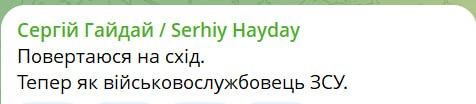 «Возвращаюсь на восток. Теперь как военнослужащий ВСУ», - заявил он.