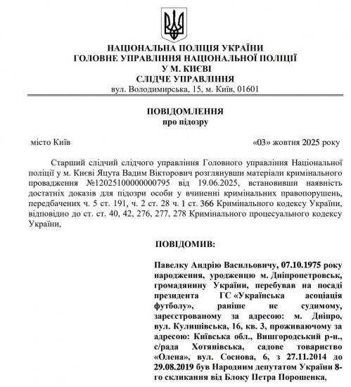 Экс-президент Украинской ассоциации футбола Андрей Павелко получил новое подозрение в коррупции