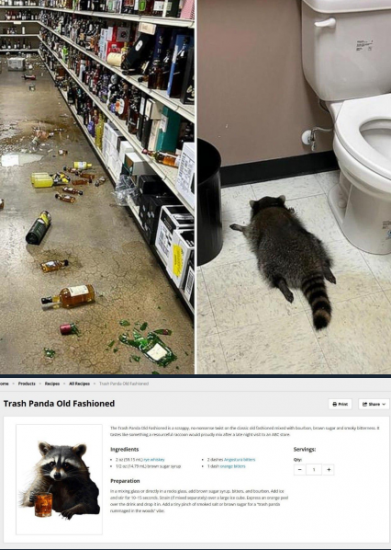 Енот-пьяница, устроивший дебош в алкомаркете в США и уснувший в туалете, оказался рецидивистом