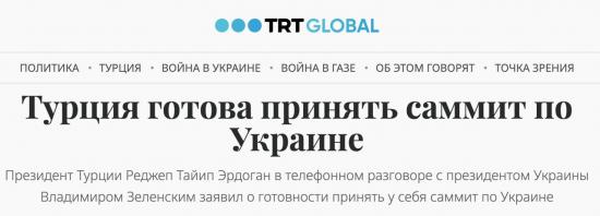 Также, по словам украинского президента, его турецкий коллега поддержал позицию Киева, что «любые переговоры без Украины не принесут постоянный мир».