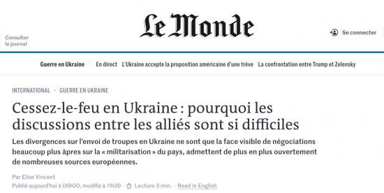 Европейцы никак не могут договориться об отправке миротворцев и военной помощи в Украину, - Le Monde со ссылкой на источники