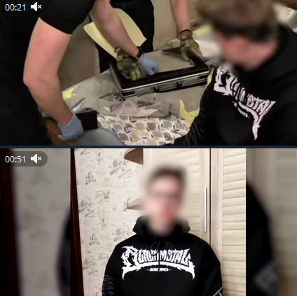 По данным ФСБ, у задержанных изъяли самодельное взрывное устройство массой около 1 кг, гранату Ф-1, пистолет Макарова с глушителем, два газовых пистолета, рации и «нацистскую символику».