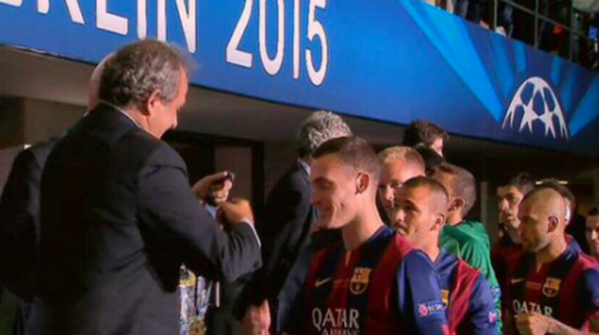 На вручение золотых медалей после победы над "Ювентусом" со счетом 3:1 каталонцы вышли в полном составе.