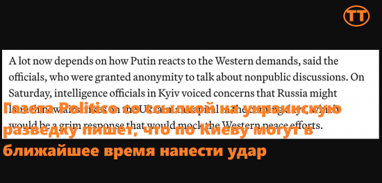 «В субботу представители разведки в Киеве выразили обеспокоенность тем, что Россия может нанести новые авиаудары по украинской столице в ближайшие дни, что станет мрачным ответом, высмеивающим мирные усилия Запада», - говорится в статье.