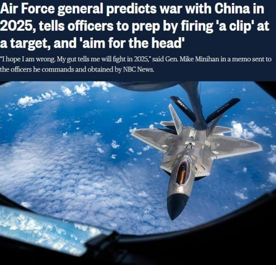 Генерал ВВС США Майк Минихан призвал подчинённых готовиться к потенциальной войне с Китаем, которая может начаться уже через два года