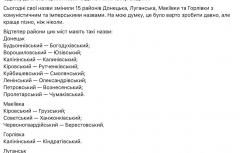 Украинские власти переименовали названия неподконтрольных Киеву районов в Донецке, Луганске, Макеевке и Горловке