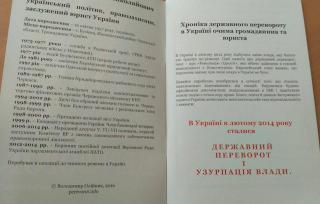 Утром 28 февраля депутаты украинского парламента обнаружили в своих почтовых ящиках книгу беглого депутата от Партии регионов Владимира Олийныка "Государственный переворот".