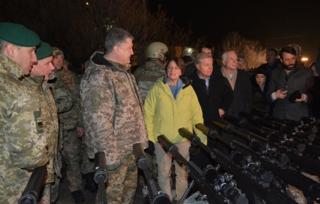 Президент Украины Петр Порошенко прибыл на командный пункт Широкино в Донецкой области вместе с американскими сенаторами и наградил одного из них — конгрессмена Джона Маккейна — «украинским наградным оружием».