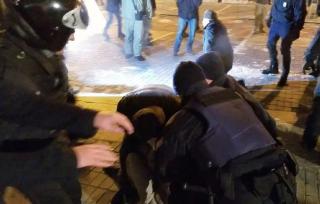 Вечером 16 ноября в Киеве возле Дворца "Украина" участники акции с символикой ВО "Свобода" и "Сокол" протестовали против проведения концерта Потапа и Насти Каменских, которых "патриоты" окрестили "кремлевскими гастарбайтерами".
