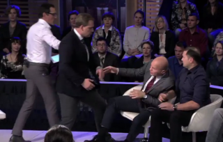 Скандалом ознаменовалась съемка политического ток-шоу на канале «Звезда». Не сдержавшись, украинский журналист Юрий Кот дал в голову украинскому политологу Вячеславу Ковтуну.