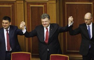 Смена премьер-министра Украины в настоящее время неактуальна, подчеркивается в совместном заявлении президента Петра Порошенко, премьер-министра Арсения Яценюка и председателя Верховной Рады Владимира Гройсмана.