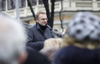 Мэра Львова Андрея Садового освистали на вече по случаю Дня Достоинства и Свободы и второй годовщины начала Революции Достоинства в Львове.