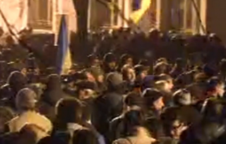 Участники Евромайдана и родственники погибших "героев Небесной сотни" предали обструкции президента Украины, который 21 ноября пришел к памятному кресту на ул. Институтской.