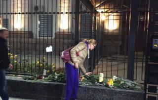 Киевляне несут цветы под посольство РФ, чтоб почтить память погибших в авиакатастрофе в Египте