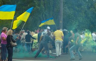 В Днепропетровске на митингующих за отставку Порошенко напали люди в балаклавах