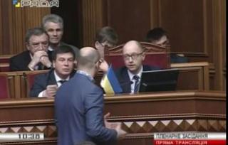 На заседании Верховной Рады в пятницу, 24 апреля, между премьер-министром Арсением Яценюком и внефракционным депутатом (бывшим представителем ВО "Свобода") Сереем Рудиком состоялся курьезный диалог.