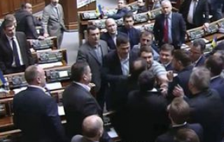 Депутаты фракции Радикальной партии Андрей Лозовой и Олег Ляшко устроили потасовку в здании Верховной Рады во время пленарного заседания.