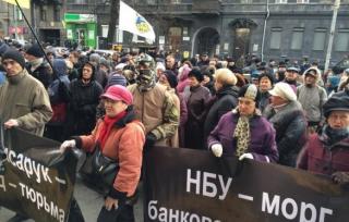 В Одессе под зданием Национального банка Украины около 30 человек устроили митинг, требуя пересмотреть уплату валютных кредитов по курсу, по которому они были получены.