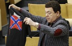 Рос сийский певец и депутат Йосиф Кобзон в очередной раз отличился. Он призвал коллег в Госдуме поучаствовать в благотворительной распродаже футболок с надписями "Новороссия" и "Вежливые люди".