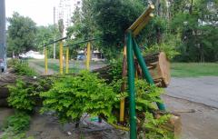 В Керчи штормовой ветер валит деревья