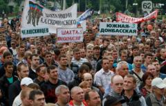 Шахтеры государственных шахт Донецка провели в среду, 18 июня, на площади Ленина митинг против военных действий украинской армией на территории области.