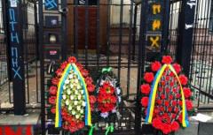 В Киеве к посольству РФ несут похоронные венки