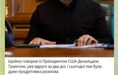 «Только что говорил с Президентом США Дональдом Трампом, уже во второй раз за два дня, и сегодня тоже был очень продуктивный разговор .