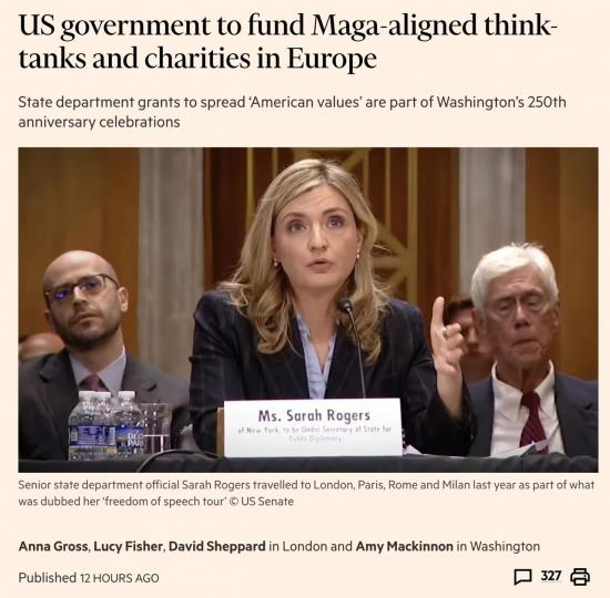 По их данным, высокопоставленный чиновник Госдепа Сара Роджерс в декабре совершила поездку в Европу для встреч с влиятельными правыми аналитическими центрами и провела переговоры с ключевыми фигурами партии Найджела Фараджа «Reform UK» о выделении средств на распространение ценностей MAGA.