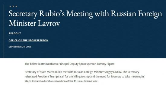 Госсекретарь США Рубио на встрече с главой МИД РФ Лавровым повторил призыв Трампа к прекращению войны в Украине