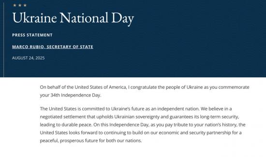Госсекретарь США Рубио призвал Украину к «переговорному урегулированию» войны, поздравляя с Днем независимости
