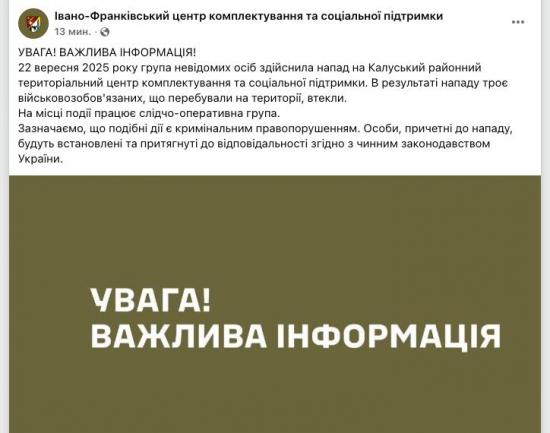 Группа неизвестных напала на Калушский ТЦК, трое военнообязанных сбежали