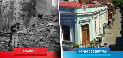 Правящая партия Грузии опубликовала видео, где кадры Тбилиси сравниваются с разрушенными населенными пунктами Украины с подписью: "Нет войне! Выбирай мир!"