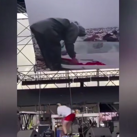 На фестивале Tbilisi Open Air артист Эрекле Гецадзе демонстративно бросил триколор в мусор и сделал вид, будто справляет нужду.