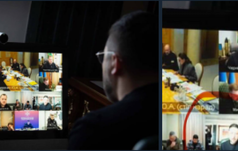 Офис президента опубликовал фото Зеленского, проводящего совещание в то время, как у него нет света, при этом на экране показали его же со светом