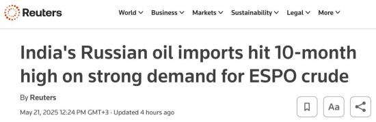 Индия в мае закупила рекордный объем российской нефти, - Reuters