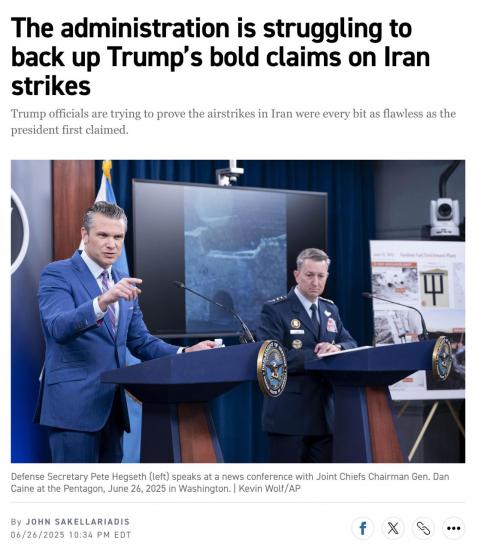 Politico отмечает, что хотя администрация Трампа расхваливает удары как безусловный триумф, она пока не предоставила четких доказательств, подтверждающих это.